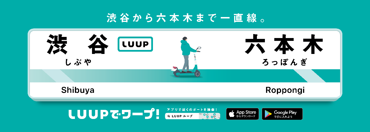 キャンペーン中は〝街じゅうを「駅前化」するインフラをつくる〟を掲げて、混雑しがちでユーザーから移動に手間がかかると意見が寄せられた東京・大阪エリアの電鉄14駅と、LUUPポート50か所に駅名標を模したワープルート提案型広告を掲示。掲出場所には〝移動面倒あるある〟なメッセージとして、例えば、「六本木が最寄りなのに、徒歩だと11分。」(六本木→西麻布)、「歩くには遠い。タクるには近い。」(赤坂→六本木)、「頑張れば歩ける距離は、歩きたくない。」(梅田→淀屋橋)などを掲げる。1100ヵ所超あるLUUPのポートを利用すれば、ゴールデンウィーク中の公共交通機関の利用での三密が避けられ、人流の分散・混雑回避にも貢献する。