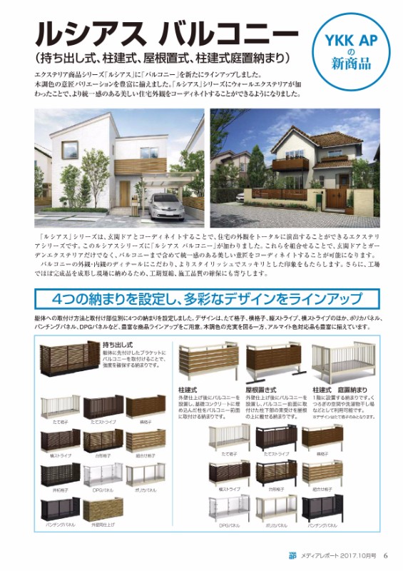 バルコニーアネーロが『ルシアスバルコニー』に生まれ変わりました。 2017 9/30 注目の商品情報 2017年9月30日2023年9月20日 玄関ドアとガーデンエクステリアだけではなく、バルコニーまで含めて統一感ある外観を提案することができます。 工場でほぼ完成品を成形しみなさまの現場に納めるため工期の短縮にもなります。新商品ルシアスバルコニーを是非お勧めください! PDFデータはこちら ダウンロードできない場合は、「ダウンロードする」を右クリックし、「対象のファイルを保存」を選んでダウンロードしてください。 注目の商品情報