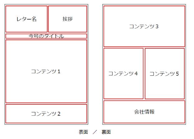 例えば、とある会社のニュースレターだと、下記の様なレイアウト構成になっています。