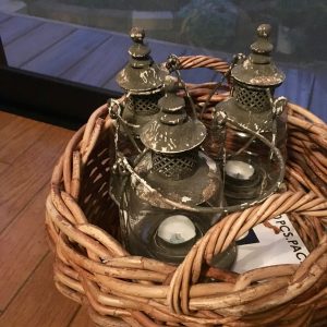 過去に庭のリフォームをさせていただいたお客様と今、エントランスリフォームの打ち合わせをしています。ご自宅に伺うとお庭に面した窓前におしゃれなランタンが置かれていました。