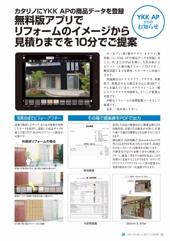 すぐ提案できるからすぐ決まる、初期提案ツール、カタリノ。 積極的に活用してエクステリアを提案し受注している事例の一部をご紹介いたします。是非ご活用願います。 PDFデータはこちら ダウンロードできない場合は、「ダウンロードする」を右クリックし... -