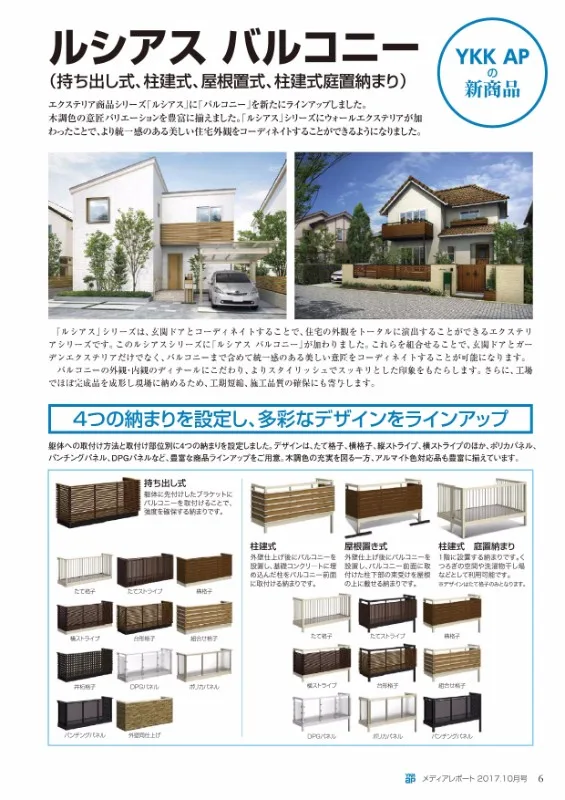 玄関ドアとガーデンエクステリアだけではなく、バルコニーまで含めて統一感ある外観を提案することができます。 工場でほぼ完成品を成形しみなさまの現場に納めるため工期の短縮にもなります。新商品ルシアスバルコニーを是非お勧めください! PDFデータは... -